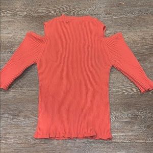 It is very cute open shoulder crop top. It is a bit faded but still has a lot of life.