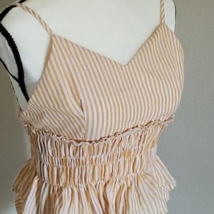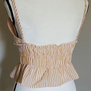 Retro strappy striped mustard yellow and white crop top. Perfect summer time top. Mid section is rauched.