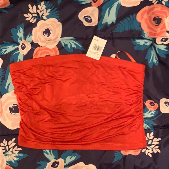 Soft Stretchy crop top its ruched on the sides , size Medium Its more like A Rust - Orangish color Perfect for the summer looks great with High waisted shorts or jeans . Smoke free/ Pet free home