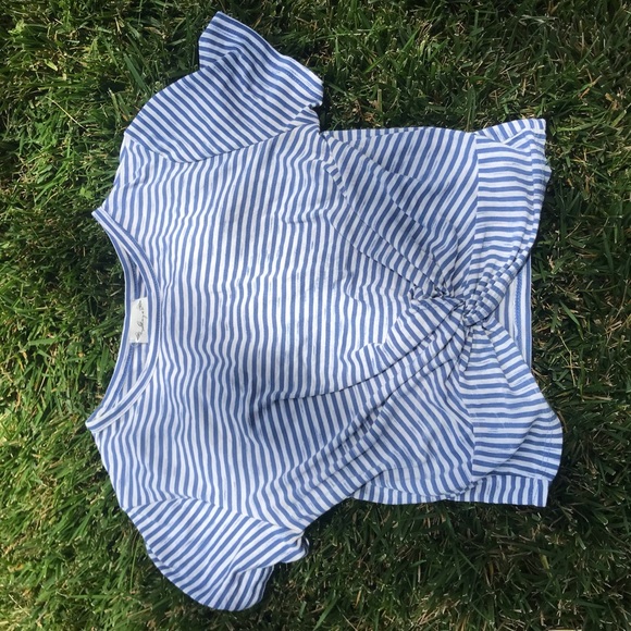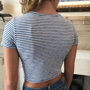 Black and White Stripped Crop Top, fitted with knot in front, small horizontal stripes