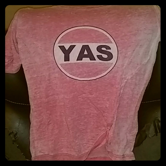 Vintage featherweight cotton tshirt with word "YAS" printed across front. Cropped. Pre-faded fabric.