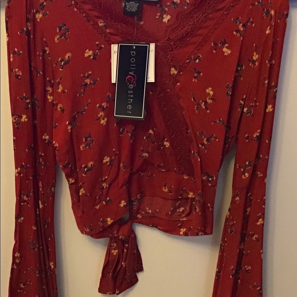 Rust and floral crop top with long bell sleeves with back tie at the bottom