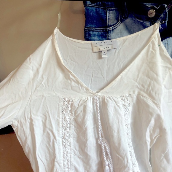Kendall + Kylie flowy crop top, drawstring front and lace accents, never been worn (if interested will steam befor shipping)
