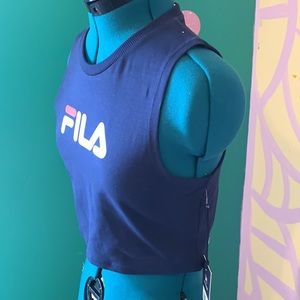 Sports Fila Crop Top! Workout in it or dress it up with some shorts or jeans a pair of Fila sneakers or some super cute heels! Your choice! Either way this is a super cute crop top!