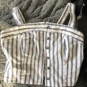 button crop top, from Tilly's, lightly used, white and blue stripes