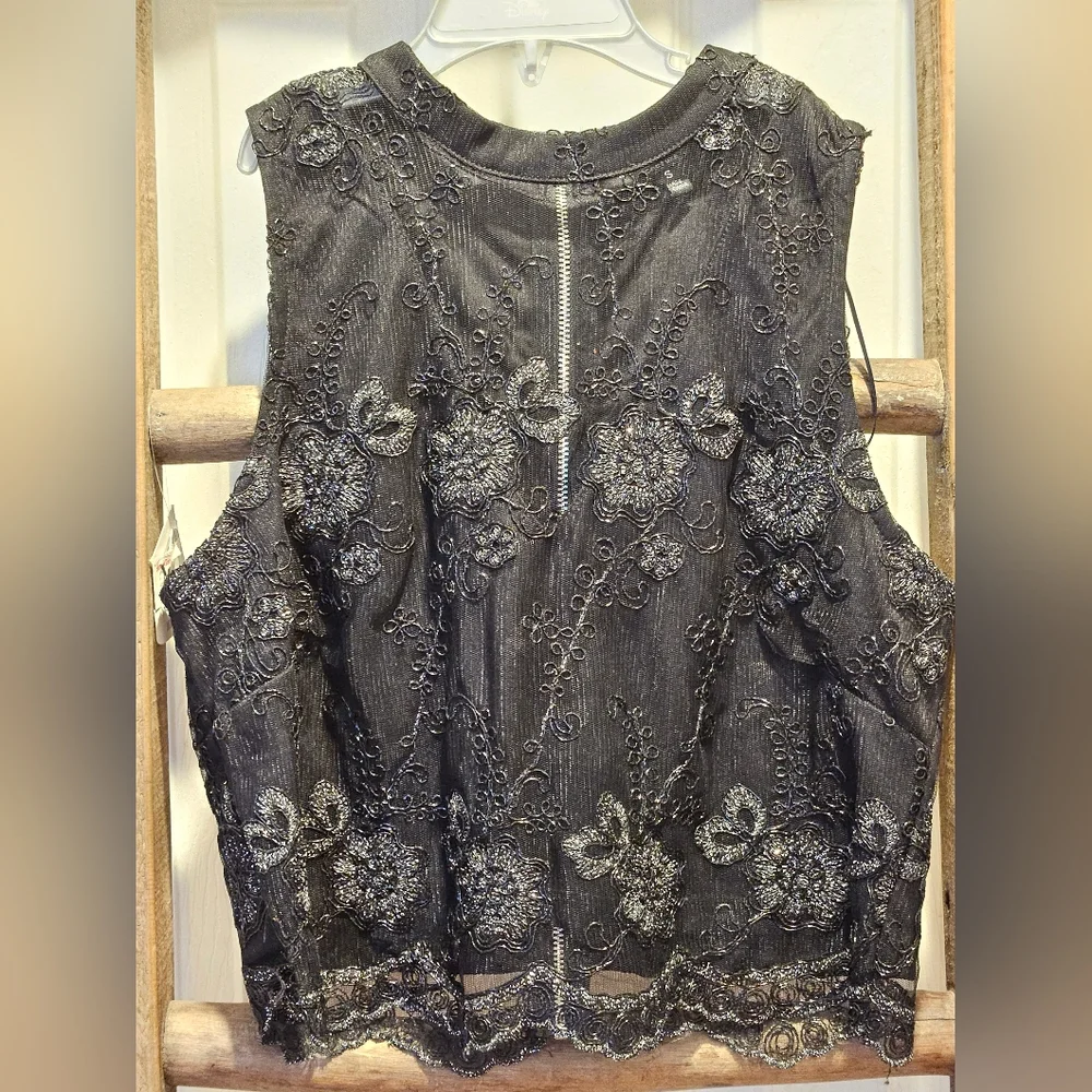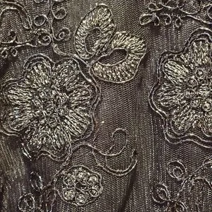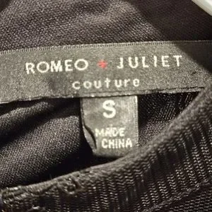 Romeo & Juliet Couture brand, black, Lace material with a hint of shiny gray. This can be worn stylish with pretty much anything. Zip-up is located at the back. Handwash recommended.