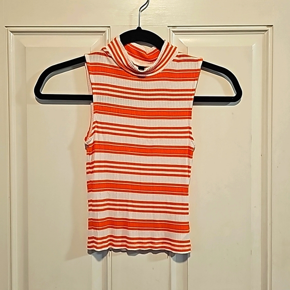 orange striped crop top tee shirt from H&M. 9.5 inches from the bottom arm pit to the bottom of the shirt