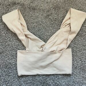 Never worn thick material crop top that twists in front and has very open back