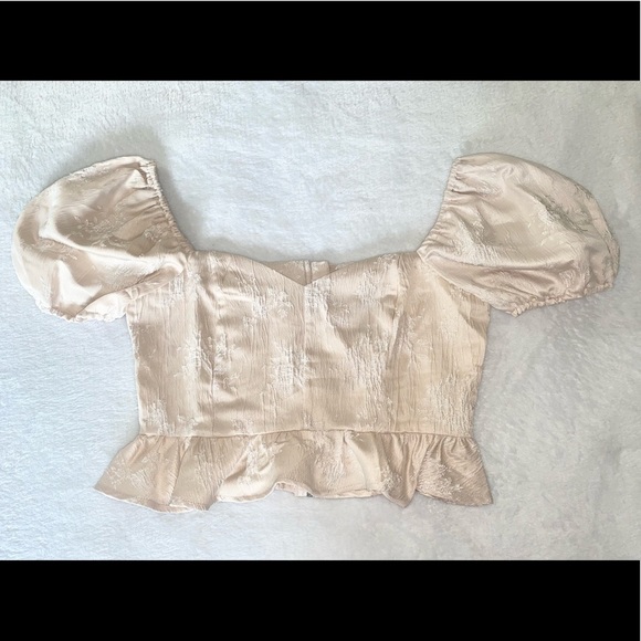 New With Tags. Cute ruffle sleeves. This top features a little stretch and zips in the back. Size M