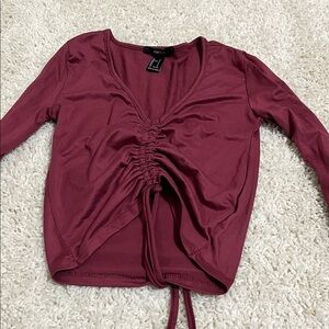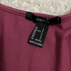 Size small. Pretty color between burgundy and purple.
