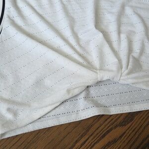 black and white lightweight crop top with twist detail. fits true