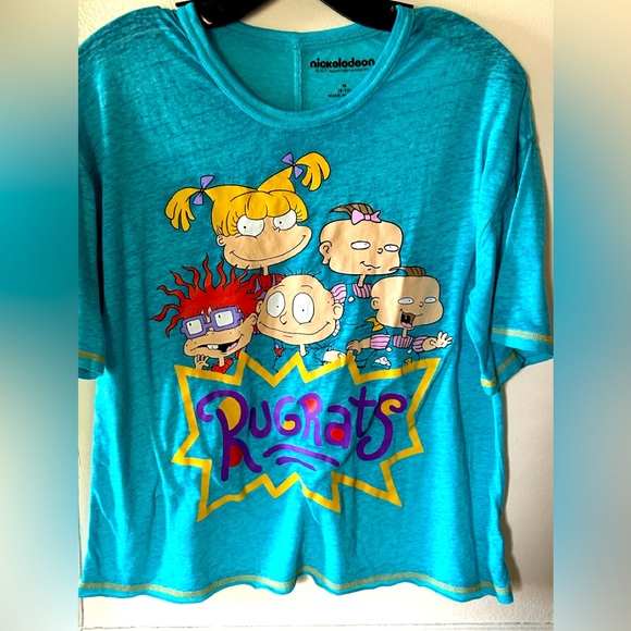 Made by Nickelodeon, featuring the Rugrats printed on the front. Barely worn, crop top in bright blue, size junior’s medium