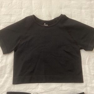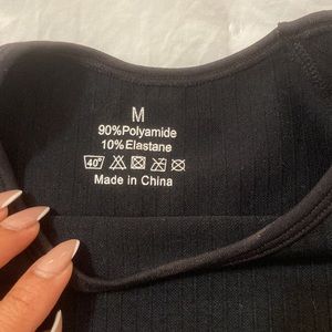 Black crop top set. Top is size Medium brand new from Shein. Bottoms are used and size Medium. Shorts are dry fit Nike, with drawstring.