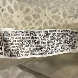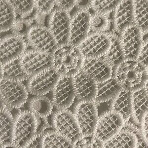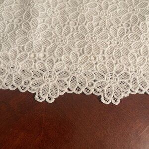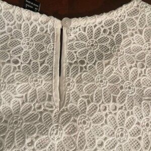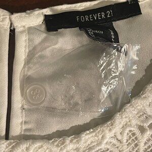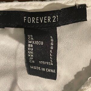 KEYWORDS: lace crop top, Forever 21 top, white sleeveless top, floral lace design, women's large top, scalloped hem top, polyester crop top, elegant crop top, summer top, casual lace top, formal crop top, stylish women's top, lightweight white top