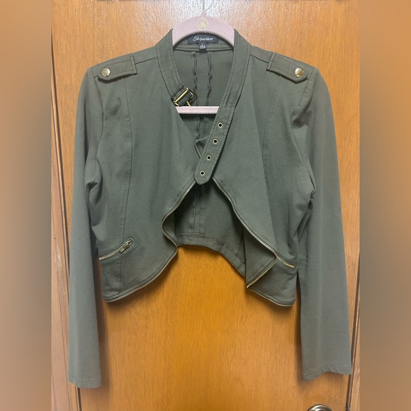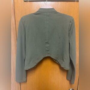 Army green crop jacket with shoulder pads and gold detail