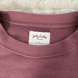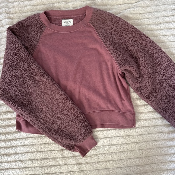 Purple cropped pullover sweater/shirt. Fuzzy sleeves outside, Warm fabric inside