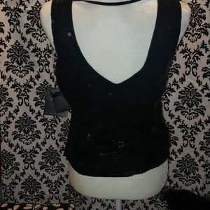 New with tags black crop sequence top low cut in back v neck in front