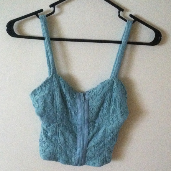 Light blue zipper up crop top