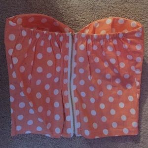 Orange polka dot crop top with zipper in the back