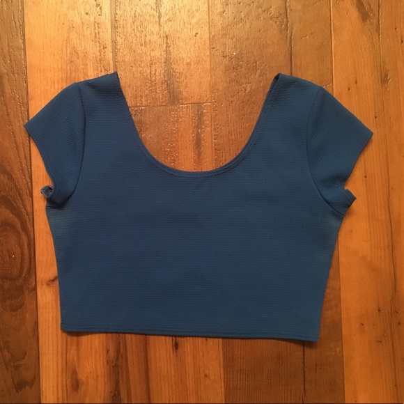 Royal blue polyester-spandex blend crop top. Size Medium but is a close fit.