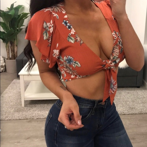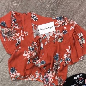 Coral floral tie crop top. Pictured to shown for the fit. Never worn, no tags.