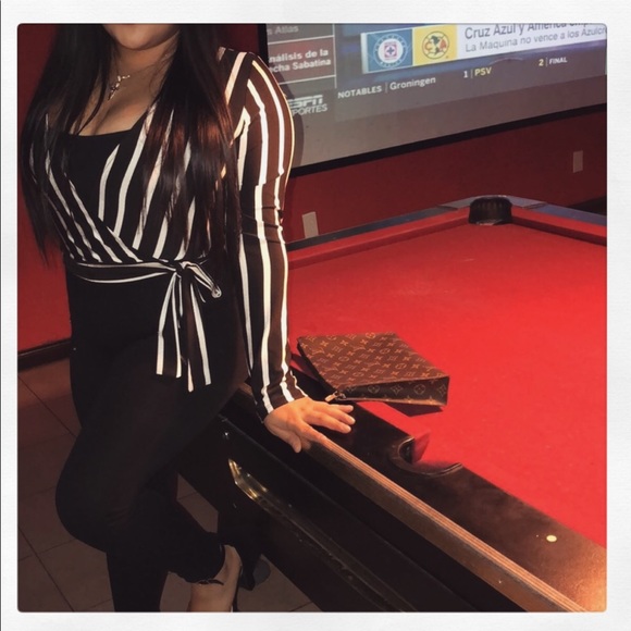 🌸Black/White stripes crop top. 🌺Stretchy 🌸Tie around waist
