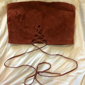 Super cute Brown suede crop top with ties that wrap around never been worn