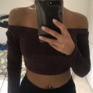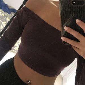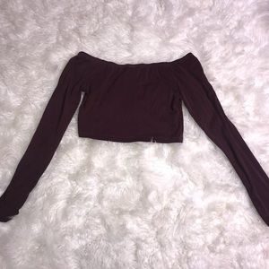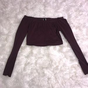 Long sleeve off should dark purple crop top !! I’m usually a small for my tops but this is a M and it fits perfectly fine as you can see in the picture