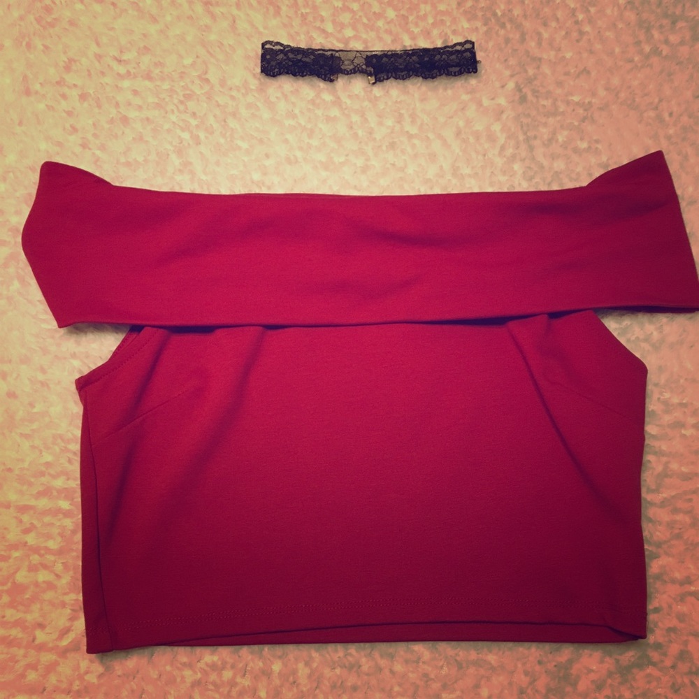 Red off the shoulder crop top. Super cute! Never worn. Size L