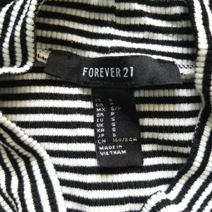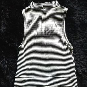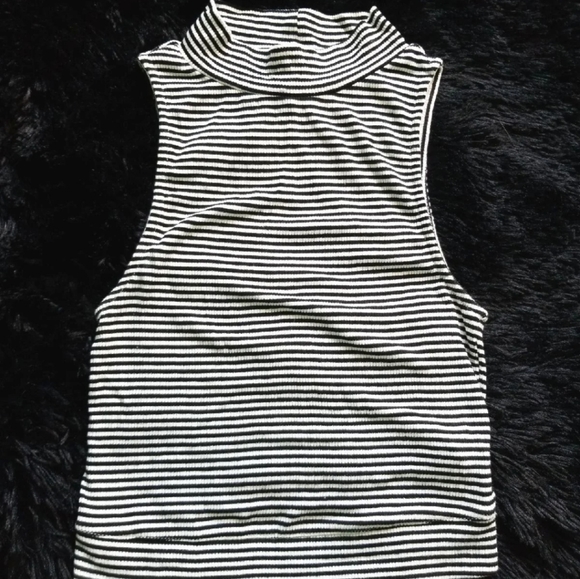 Black and white stripe ribbes high neck crop top