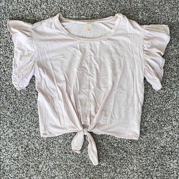 Rose colored tie front crop with flutter sleeves. Worn one time