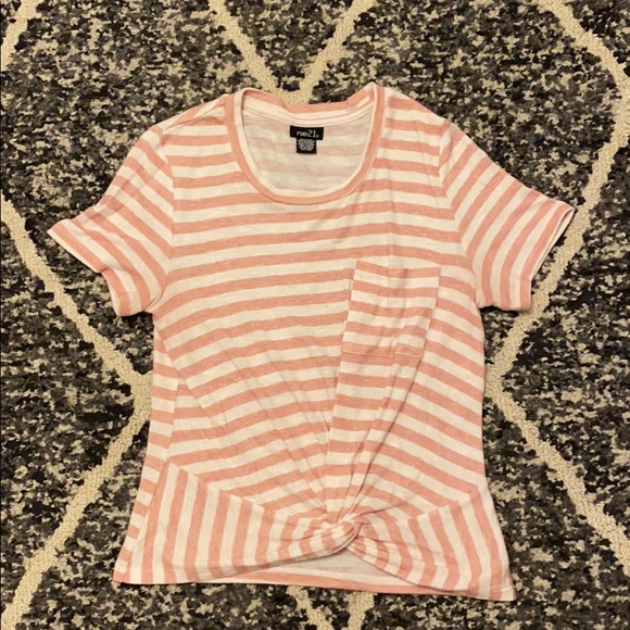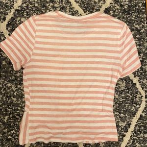 Pastel pink and white striped crop top from Rue21. Slightly worn, no rips, tears, or stains. Knot in the front