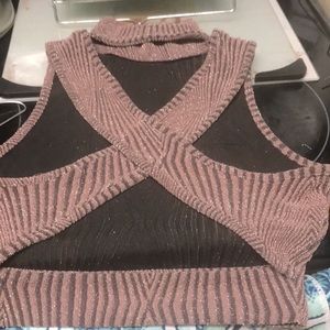 Blush pink, Crop top with cris cross back steps & high neck.