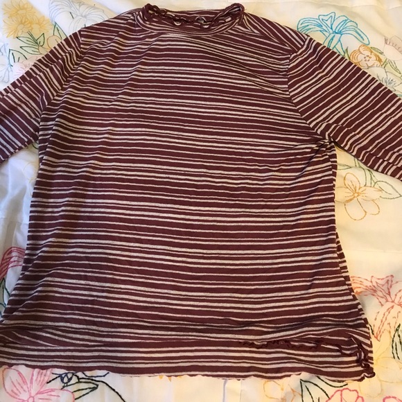 Cute ruffled neck crop top burgundy and white striped. Can fit like a medium though.