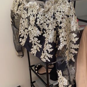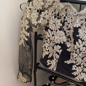 Black lace with gold flower design sheer crop top Never worn Fits small If you have big breast this won’t fit