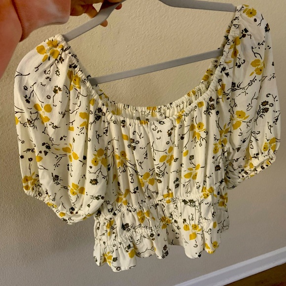 Cream with yellow flowers crop, senched top, never worn