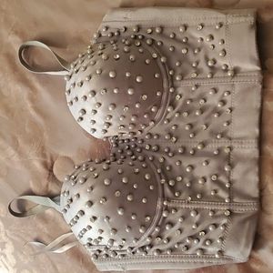 gray top, very beautiful, in perfect condition, never worn, size M, with rhinestones and pearls