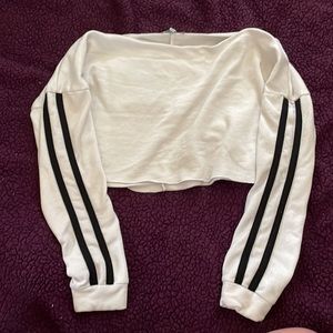long sleeve crop with black stripes down the sleeves