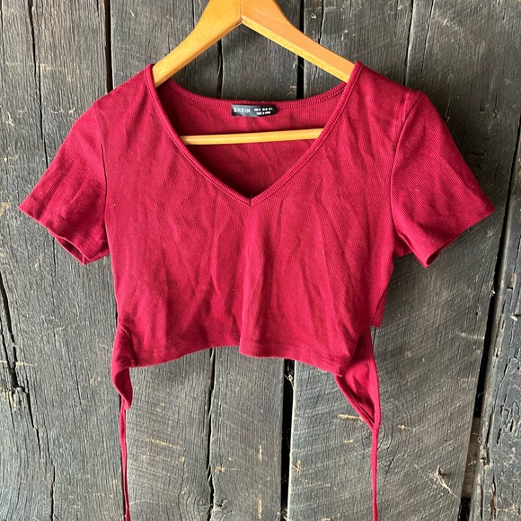 Red tie back super cropped Shein tee, never been worn!