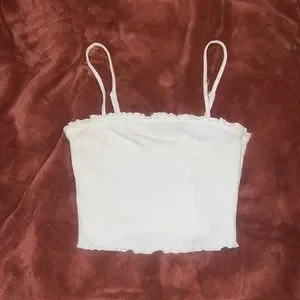 White rouched spaghetti strap crop top