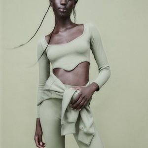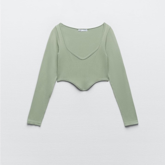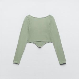 Seamless corset crop top. Long sleeve. Brand new w/ tags. Color is khaki.