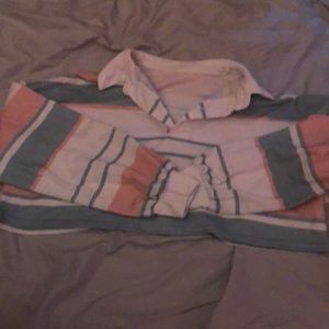 Cute crop top has a few grey stains on the sleeve but could come out with bleach.