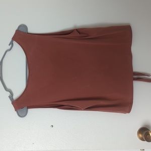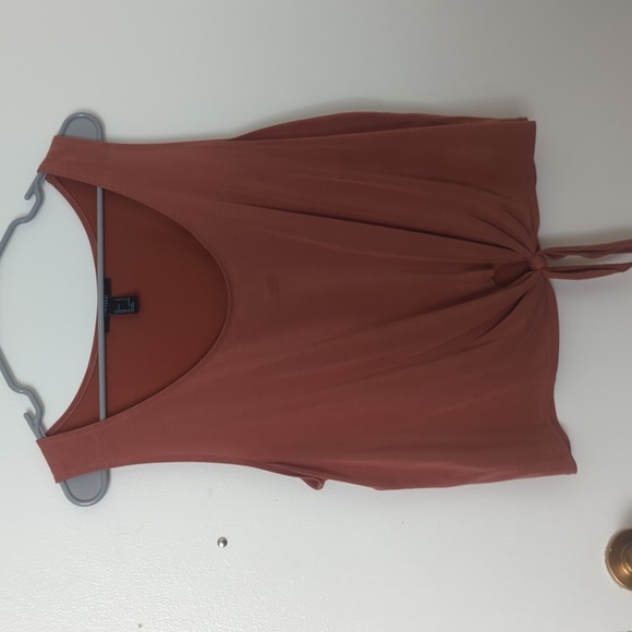 Salmon colored crop top with tie from Forever21. Does have a stain on the front, but not all that noticable while worn!