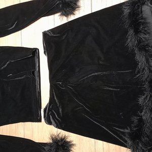 fluffy marabou feather trim long sleeve top and skirt combo. Top is size S and skirt is size M.