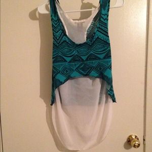 It's a blue tribal print crop top with a long white back, very cute. Only worn like 3 times.