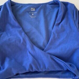 Stylish blue crop top. Long sleeves. Wrap design. Perfect for casual wear and work out