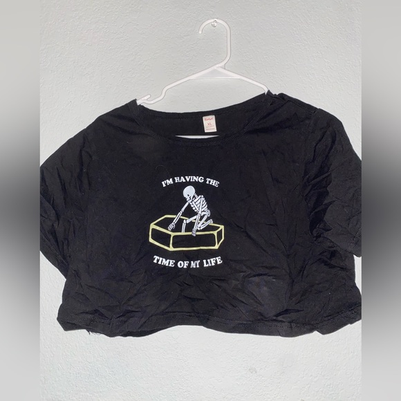 This is a super cute shirt but I never wore it due to it being super cropped on me. Very soft! Fits like a large