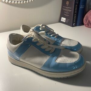 Very unique pair of Cropp sneakers from Poland American size 8-9 ladies, UK 6.5 Eur size 40 Blue and white lace up. Very good worn condition.