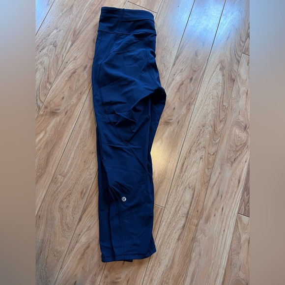 Size 10 cropped leggings high rise. I’m 5”10 and these hit mid calf .. about 25 inseam. Navy blue