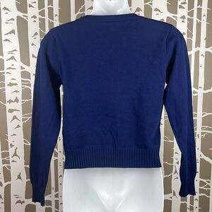 Unbranded Cropped Argyle Print Cardigan Sweater sz XS. Features navy blue, light blue & white argyle print smooth stretchy knit (size tag removed but feels like nylon / spandex blend), button front, V-neckline, banded ribbed knit cuffs and hemline, shorter more cropped fit. Worn once and clean with no flaws to note. This sweater is the perfect compliment to your Academia or Preppy styles!